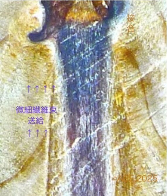 微細繊維束には、有機反応器官との受授_生化学合成を行う上部組織へ供給される経路と養分の送り込み過程の色変が連続_脚長の裾と腰、首筋から髪形に麗人姿にも見えました。