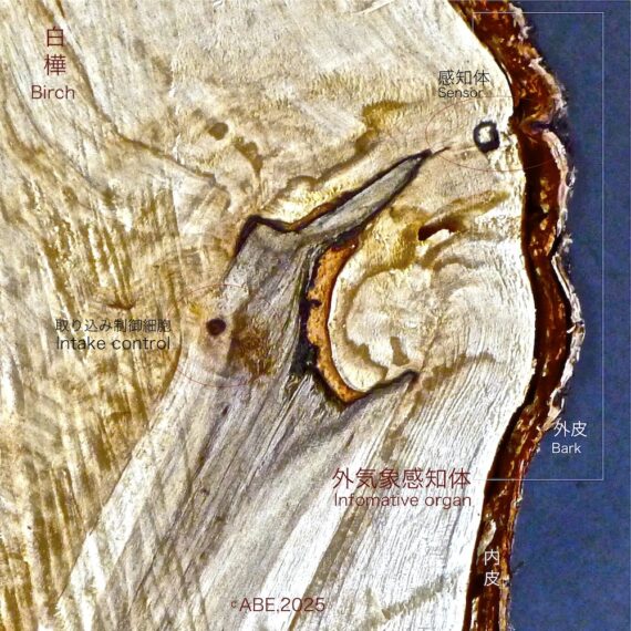 白樺樹体内で有機酸をアルカリに変え、清浄な樹性・美質を造り出し、生成分泌質量はどのように顕れるのか? |The secretion organ to produce anti-blastic substances and wood color with clean and aesthetic qualities in Birch White. By mapping, systematic organization of life-sustaining was appeared.|見えない生命維持構造をマッピングで明らかに 木の内科-138続
