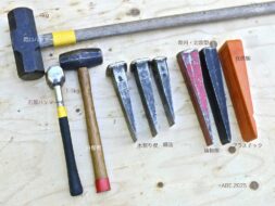 このカナヤを打ちこむ木槌を「カケヤ」といい、建築軸組・土木杭打ちになどに現役です。堅木樫材木工は、別稿に記載。
