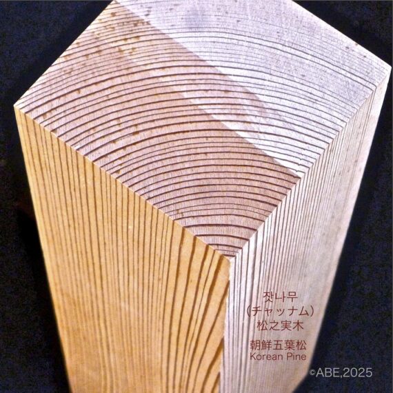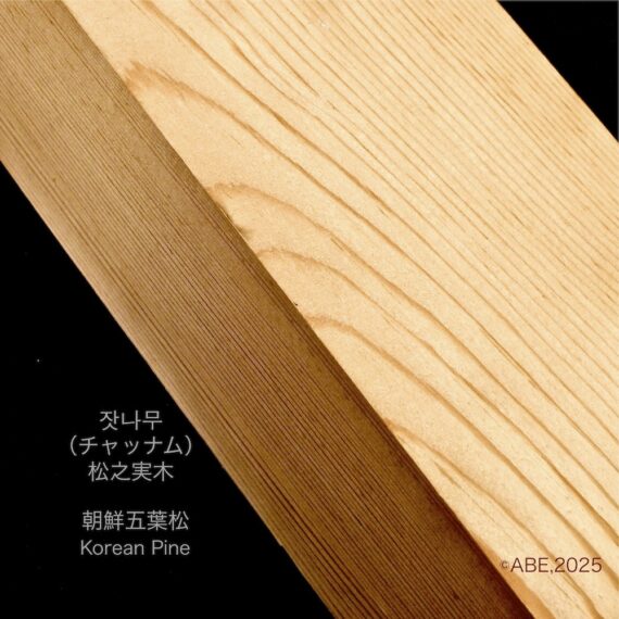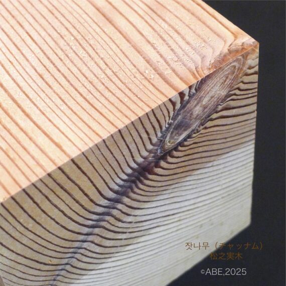 立木からの製材や切削加工と材質は、現場職人の体験や知見が伝わりますが、大径木の 잣나무(チャッナム)太角実物カット材は、当時、機内持ち込みでは珍しい怪しい手荷物でした。大事そうに木の塊を抱いて通関するのは、前例がないからね。