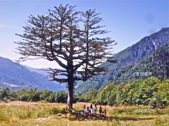 高地裏側・吉祥郡上宝村鍋平高原にある樅?に人が憩う様子 2000年8月