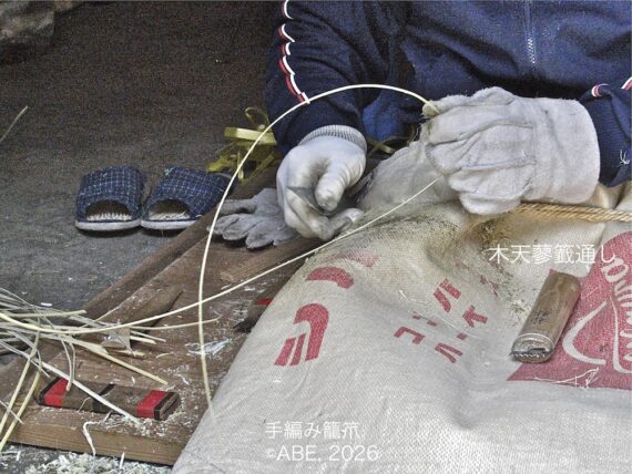 木天蓼籠笊手編みの実際を教示していただき、制作作業を収録しましたので伝世ι公開します。