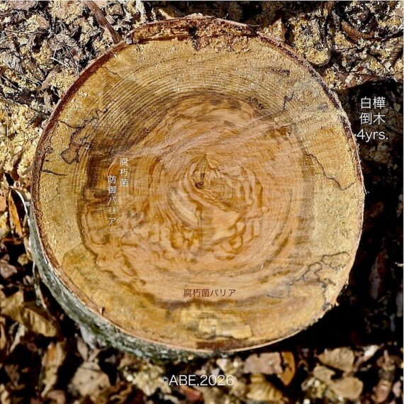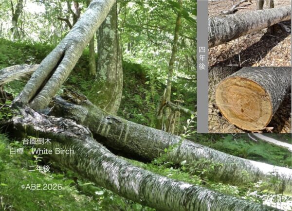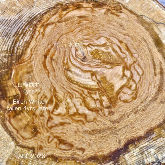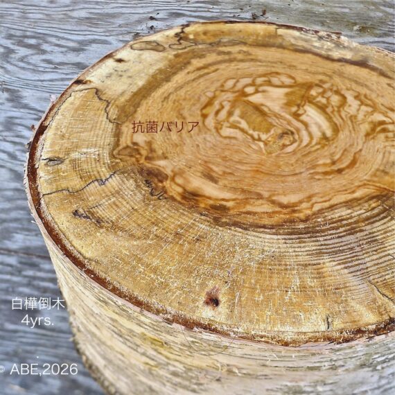 天然蠟パラフィン含有の外皮は、強い抗菌力を備え、多層マルチレイヤー /// ウイルス・細菌類、微生物は依り付きません。台風倒木は、4年後も樹皮・芯央の抗菌バイタルは持続_白樺樹皮の強い抗菌耐性、芯央部の抗体分泌バイタル・経年変化を明らかに。