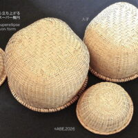 多種類の編み方に習熟し、反復連続作業で工夫が閃き、高度な造形手法が考案され、完成度を高め、スーパー楕円立体籠編み技法が相伝されてきました。 前稿に続きます。 平底・方形から成形した籖が交叉を繰り返し、丸味が膨らみスーパー […]