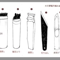 前稿に続きます。 木天蓼籠笊手編みの実際を教示していただき、制作作業を収録しましたので伝世ι公開します。 厚みがある山林用鋸刃は、切刃が立ち、間隔がすいているのでヒゴの幅決め、左右立刃で木端を脇取り、定幅のヒゴを削りま […]